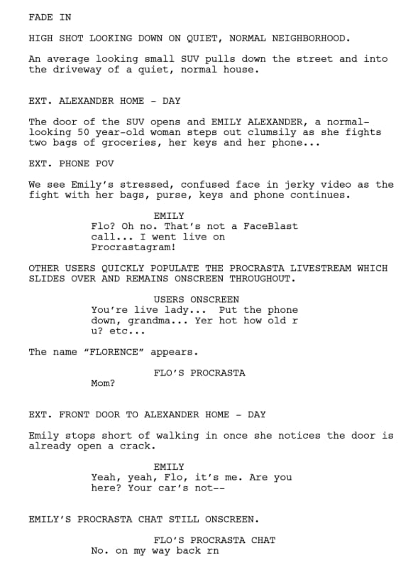 This is part of the first page from the screenplay just so you can see how it comes to life in the 2nd clip below.
