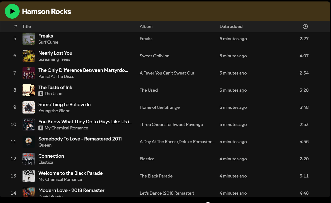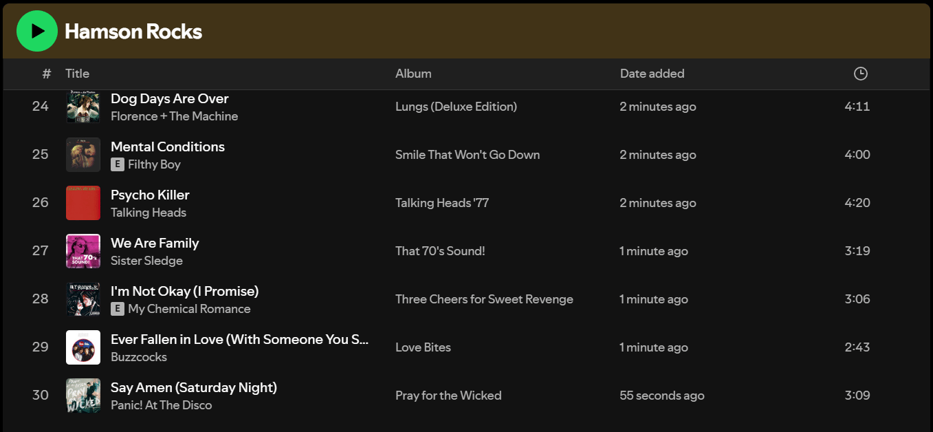 SPREAD Playlist -- Hamson Rocks